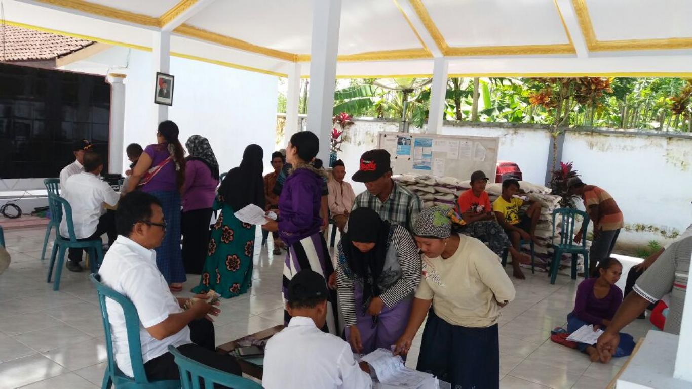 Pembagian Tuan rasidi ini dilakukan di Balai Desa Keluarga Penerima manfaat antri memperoleh dengan cara menunjukkan kupon dan kartu identitas serta menebusnya.
